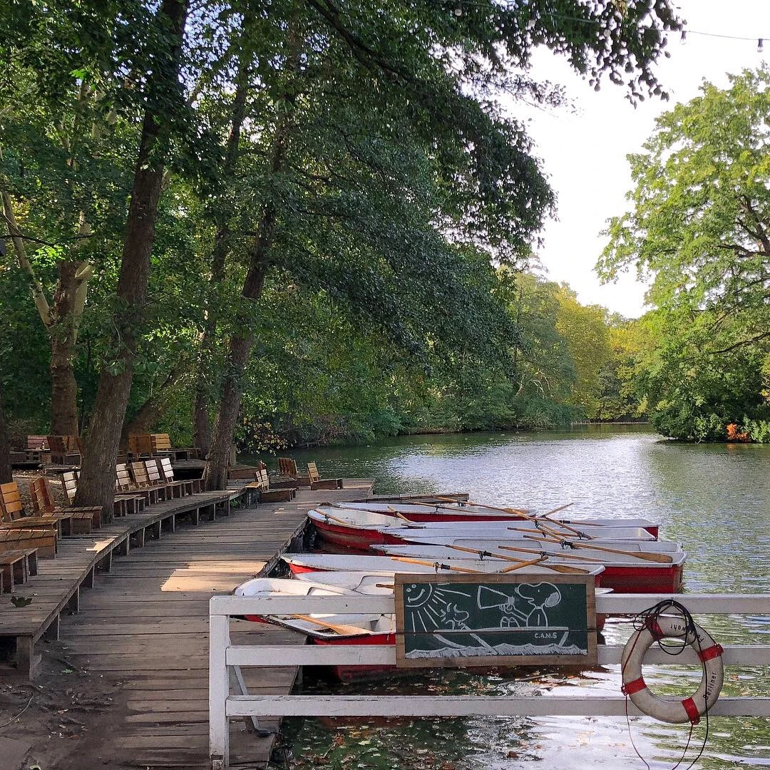 다음 행선지는 티어가르텐, 베를린 도심 속에 있는 대규모 공원이다. 시내 한가운데 이런 녹색지대가 있다는 건 정말 큰 행운이다. 이런 복 받은 베를리너들. 공원 안에 있는 자연 속 카페 Café am Neuen See. 아름다운 리얼 자연 그 자체의 호숫가에 배, 피크닉 테이블, 비치 베드가 쫘르륵 줄지어 있었으나, 너무 추워져서 인지 물가를 즐기는 사람은 없었다. 대부분 실내에서 식사를 했지만, 나는 밖에 앉아 몸을 녹일 수 있는 따뜻한 차이라테 한 잔을 마셨다.