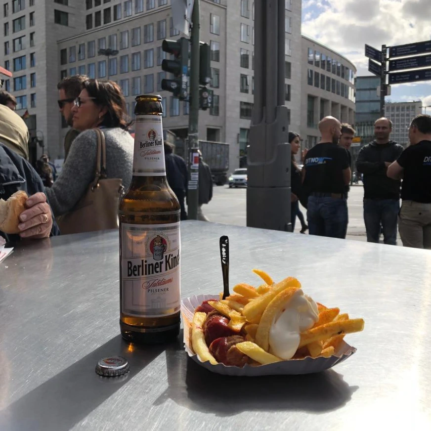 아쉬움을 접어두고, 재작년에 전시 보고 나오는 길에 먹었던 Curry36의 커리부어스트나 또 먹으러 갔다. 영어 메뉴판이 없는 곳에서 주문할 땐 늘 긴장된다. '원 커리부어스트, 포메 프리테 윗 마요네즈, 앤 어 필스너 플리즈.' 사실 다른 맥주를 가리키며 필스너 달라고 했는데 베를리너 킨들을 받았지만 뭐 이 정도는 애교로 넘어갈 수 있다. 겨우 자리를 잡고 보니 이번에는 병따개가 없다. 돌려서 열어야 하나, 이빨로 뜯어야 하나 멘붕하고 있는데 옆에 있던 친절한 부부의 도움으로 열었다.