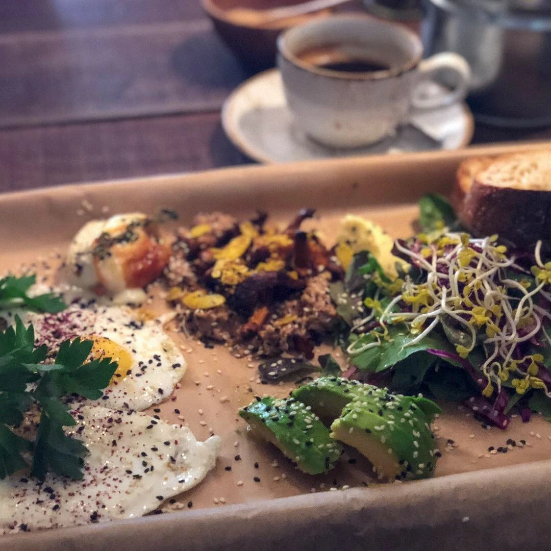 지난번에 동행과 왔을 때 맛있게 먹었던 플레이트 메뉴에 블랙커피를 주문했다. 큰 쟁반에 빵, 야채, 계란, 후무스, 치즈, 버터 등을 무심한 듯 시크하게 올려놓은 건데, 이게 뭐라고 참 건강하게 맛있다. 여기에 세상에서 제일 맛있는 당근 케이크로 마무리해줘야 하는데, 역시 혼자서 그것까지 클리어 하긴 무리다.