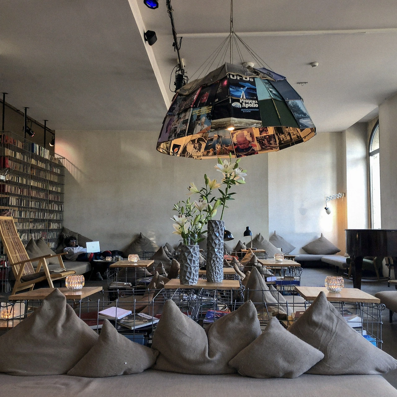 꼭 한번 묵어보고 싶었지만 가격 때문에 포기해야 했던 Michelberger Hotel에 가봤다. 숙박은 못해도 로비 구경은 할 수 있으니까. 책장에 기둥, 테이블, 전등갓까지 온통 책 천지. 책을 테마로 하는 곳은 늘 멋있다. 인테리어 소재로 이렇게나 잘 활용하는 곳은 더 멋있다. 로비 카페에서 진저에일 한 잔 하며 잠시 휴식을 취했다.