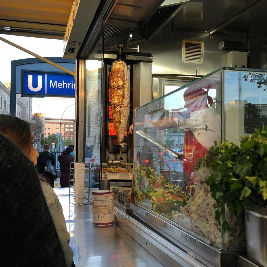 점심도 안 먹고 저녁 시간이 다 되어가니 슬슬 배가 고파왔다. 베를린에서의 마지막 식사가 될 수도 있으니 신중한 고민 끝에 그 유명한 메링담 역 무스타파 케밥을 먹으러 갔다. 그런데 줄 무엇.. 주문하기를 기다리는 사람만 족히 50명은 넘어 보였고, 나도 한 시간은 기다린 듯하다.