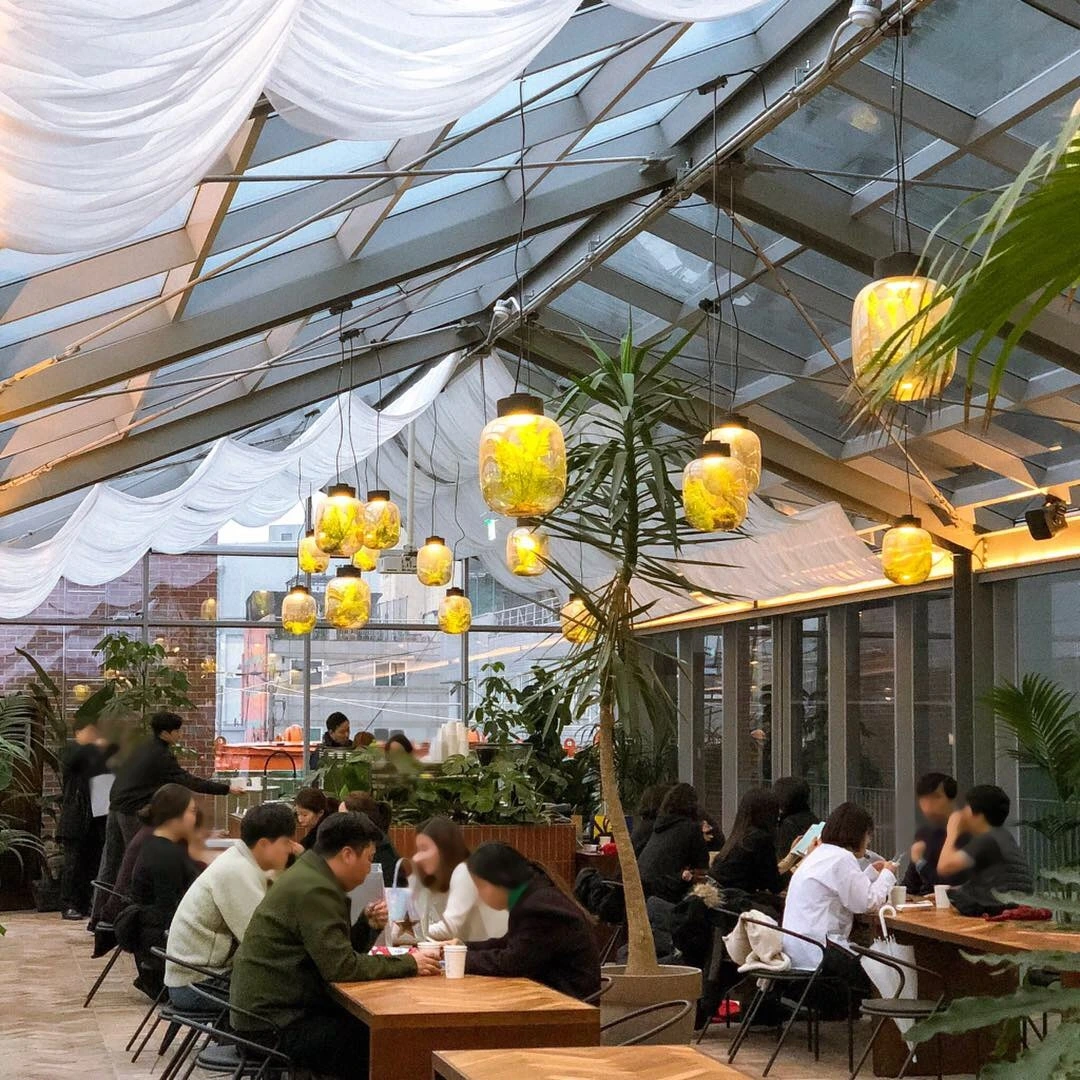 성수에 새로 오픈한 복합 문화공간 '성수연방' 맨 위층에 생긴 카페. 투명한 천장 위로 하늘이 보이는 구조가 포인트, 이름을 참 직관적으로 잘 지었다. 요즘 제주에서 핫한 카페 협재식물원 도시 ver. 같기도 하고. 비 오는 날 가서 아쉬웠는데 햇빛 쨍 맑은 날에 가면, 정말 커피 마시면서 파란 하늘을 볼 수 있을까.