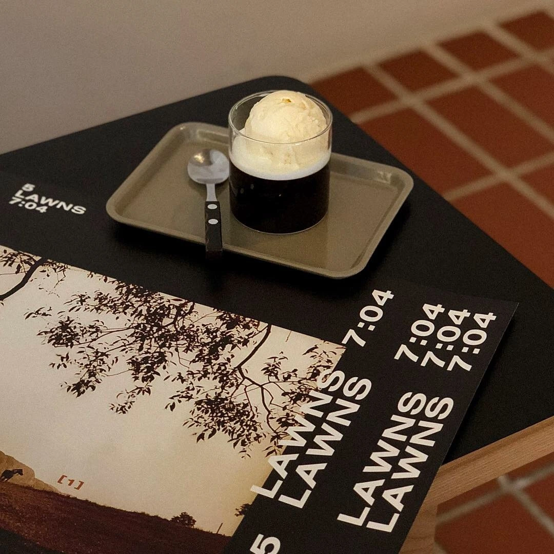 'Lawns'를 들어본 적은 없지만 아마도 이곳처럼 블랙과 짙은 벽돌색이 잘 어울리는 무게감 있는 곡이 아닐까 싶다. 흔한 화이트 계열 카페가 아니라 한층 차분한 느낌이 들었고, 시그니처 메뉴라고 해서 주문해본 커피 젤리도 딱 롼스같이 생겼다. 이런 일관성 있는 카페를 좋아한다.
