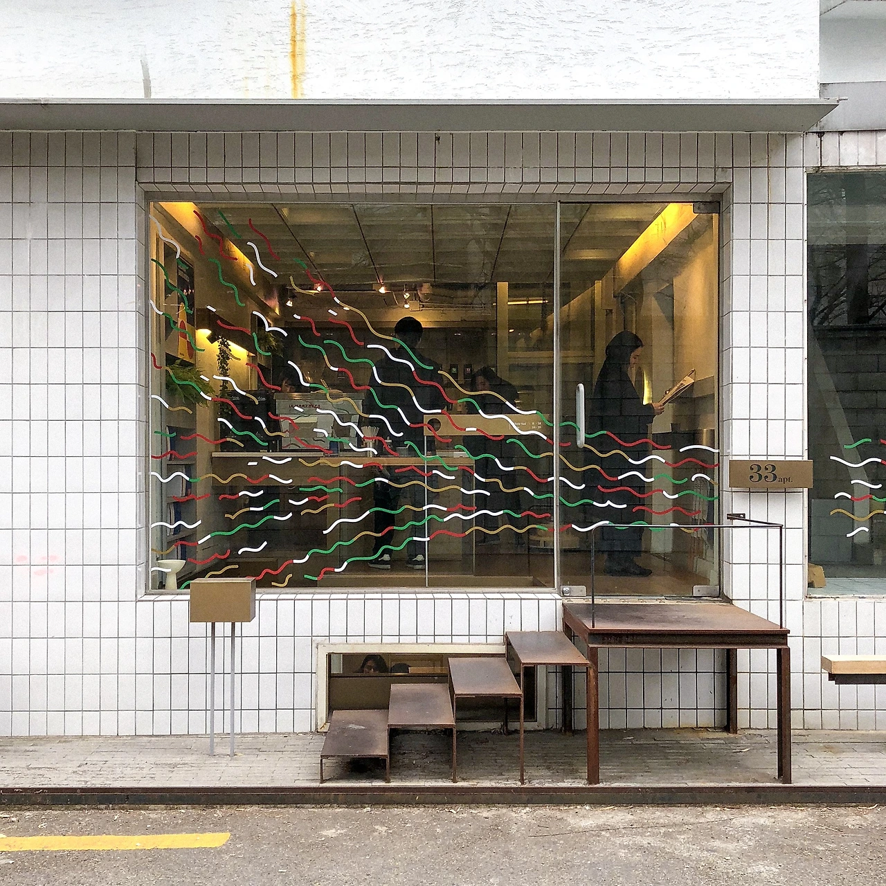 전부터 한 번쯤 가봐야지 싶긴 했는데 사실 이 날 원래 가려고 했던 카페에 자리가 없어서 얼떨결에 가게 된 곳. 흰 타일의 외관 사진이 유명해서 딱 요만한 카페인 줄 알았는데, 알고 보니 앉을 수 있는 지하 공간으로 내려가는 계단이 있었다. 아무래도 지하라 사람들의 수다 소리가 좀 울리는 건 아쉬웠지만.