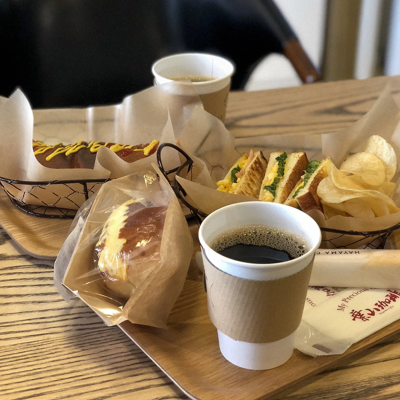 일요일 아침, 조식이 마땅치 않아 호텔 앞에 문을 연 카페에 가서 이것저것 시켰다. 빨간 벽돌 건물에 동그랗게 나있는 창이 눈에 띄는 외관이 예뻐서 나도 모르게 이 카페로 향했나 보다. 핫도그+커피가 500엔 대, 샌드위치+감자칩+커피가 700엔 대로 아침 세트 메뉴도 잘 되어있고, 간단한 샌드위치나 케익, 도시락 포장까지 준비되어 있다. 너무 친절하셔서 또 놀랐네.