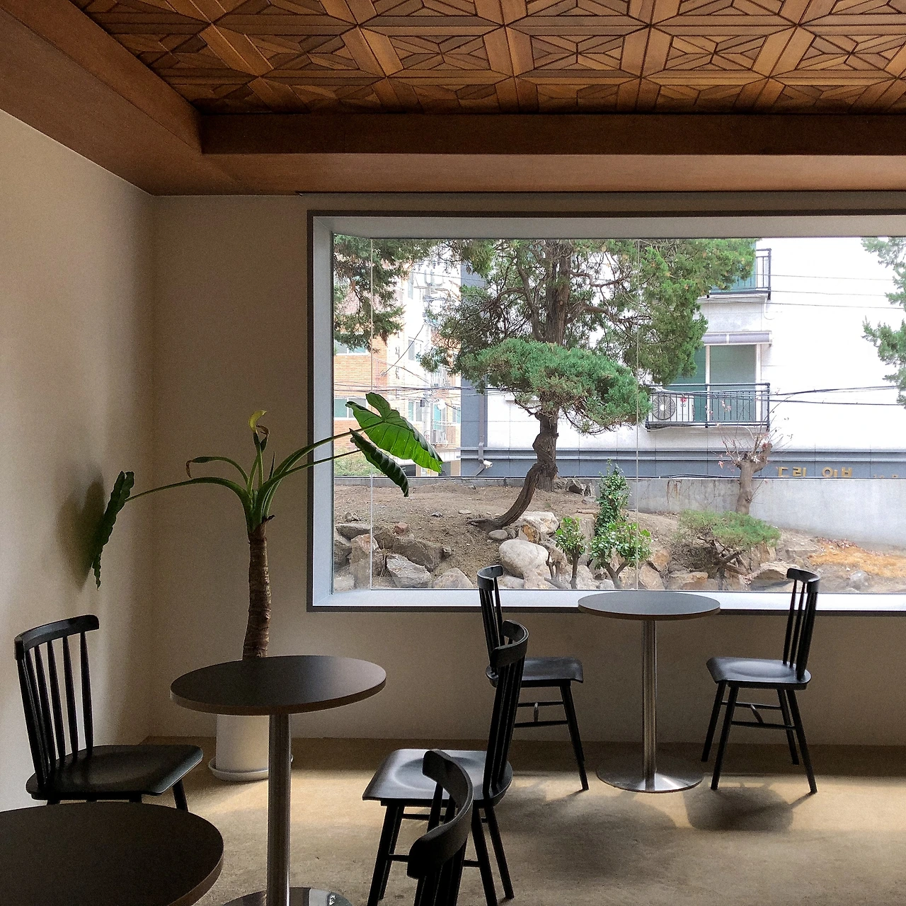 한적한 시간에 가서 운 좋게 2층 창가에 자리를 잡았다. 크게 나있는 창문을 통해 내다본 창밖은 푸르름 그 자체였다. 집 앞마당에 자라는 나무가 너무나 무성해서 마치 숲 속에 들어와 있는 듯한 착각을 준다. 달달한 아이스 블랙 라떼를 마시며 세월과 자연의 정취를 느끼던 시간. 옛것이 오늘날의 감각을 만났을 때 내는 분위기가 참 좋다.