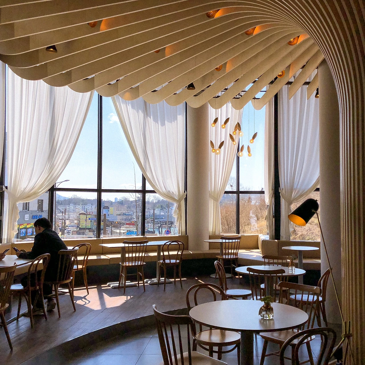 'birch'라는 이름처럼 공간 중앙에 있는 기둥에서부터 천장까지 이어지는 조형물이 나뭇가지를 연상시킨다. 천장이 높고 채광이 좋아서 답답하지 않고, 여유롭고, 이곳에서 보내는 시간이 더욱 천천히 흐르는 듯한 기분이었다.