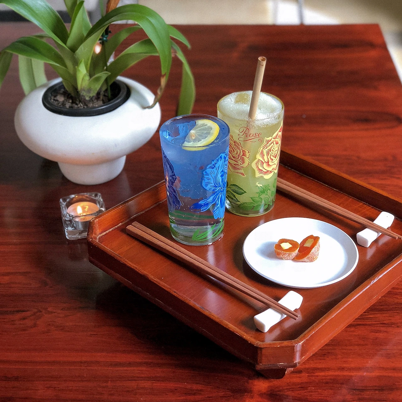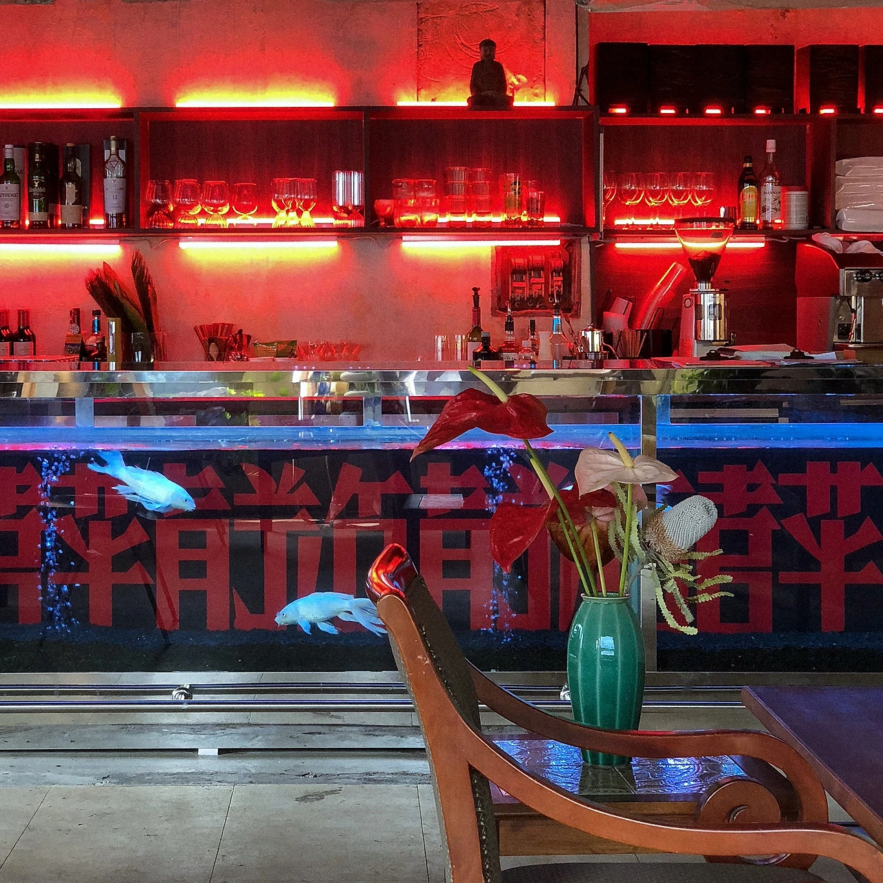 불상 앞에 향 피우고, 수족관에 잉어가 헤엄치는 카페는 처음이라. 나야 이런 곳인 줄 알고 궁금해서 찾아갔지만, 동행인은 꽤나 문화충격을 받았을 거다. 붉은 조명의 바는 홍콩의 어느 술집을, 불상 있는 쪽 벽면은 태국의 어느 사원을, 정갈하게 메뉴를 담아주신 식기는 한국의 흔한 할머니 댁을 연상시킨다. TMI지만 접시는 메이드 인 재팬이더라. 홍콩에 태국, 서울, 일본까지 한 공간에서 아시아 완전 정복할 수 있는 오리엔탈의 정수, 애프터저크오프.