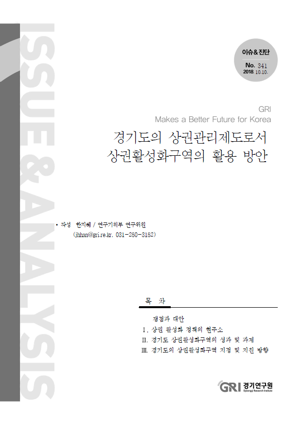 경기연구원은 14일 상권 활성화 정책의 현황을 짚어보고, 경기도에서 시행된 상권활성화구역 사업의 성과와 한계를 분석해 제도의 활용 방안을 제시한 ‘경기도의 상권관리제도로서 상권활성화구역의 활용 방안’ 보고서를 발표했다.