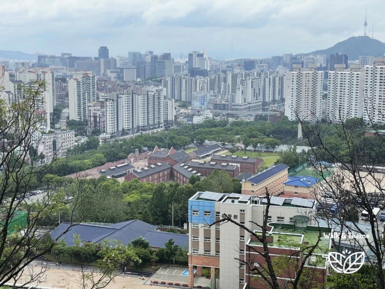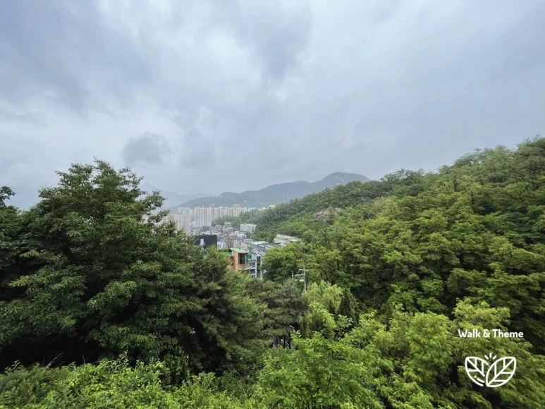 걷다 보니 첫 번째 전망대가 나옵니다. 그렇게 높이 올라온 것 같지 않은데 여기 올라서 보니 서울 전경이 한눈에 보이네요. 표지판을 보니 3호선 홍제역에서도 접근이 가능한 것 같아요.