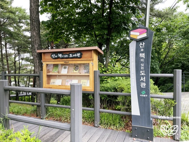 조금씩 비가 내려서 앉아보진 못했지만 숲속에 도서관을 마련하다니