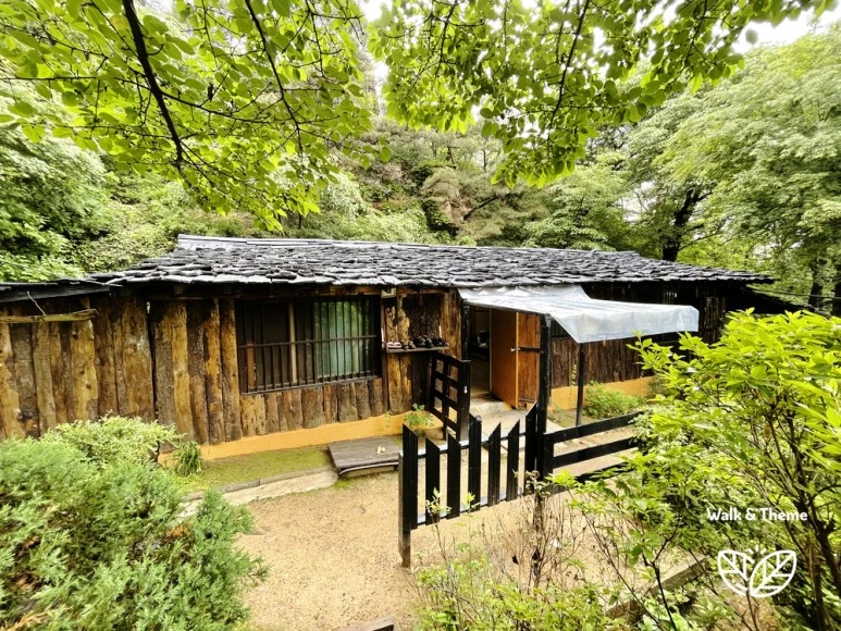 너와집 쉼터라는 곳이 있어 궁금해서 가봤어요. 숲속의 작은집이라니... 비가 와서 더욱 운치가 있어줍니다.
