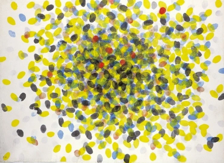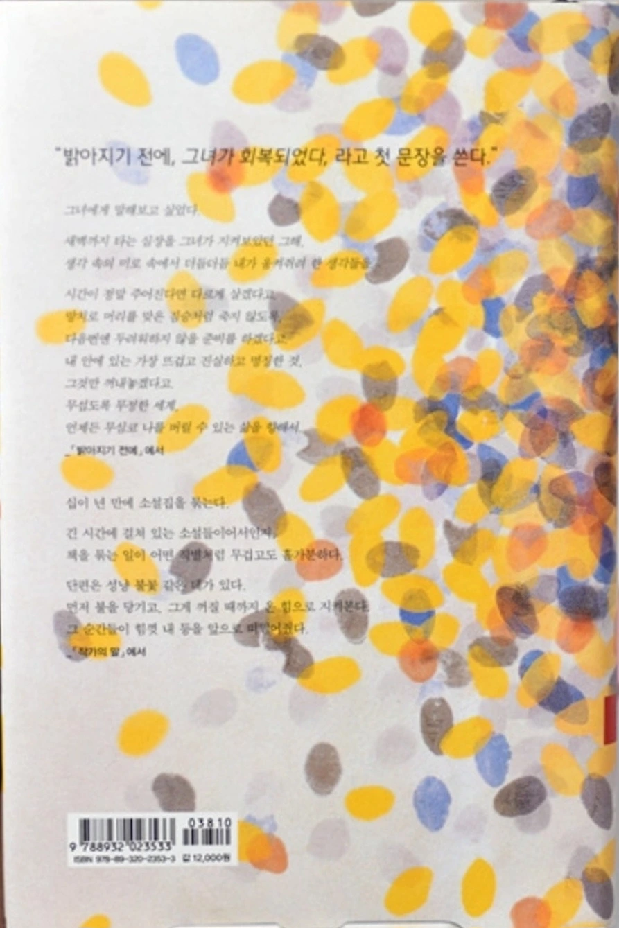 한강 작가는 실제 전시회에서 이 그림을 보고 한 면의 벽을 가득 채운 빛점들이 삶으로 가득 찬 감각처럼 압도적으로 다가왔다고 한다.