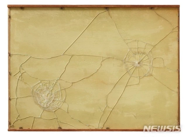 노란색점이 빛의 입자처럼 박혀 있는 이 작품은 곽인식의 평면회화이다.(노란색의 차이는 조명에 의한 것으로 보인다.)