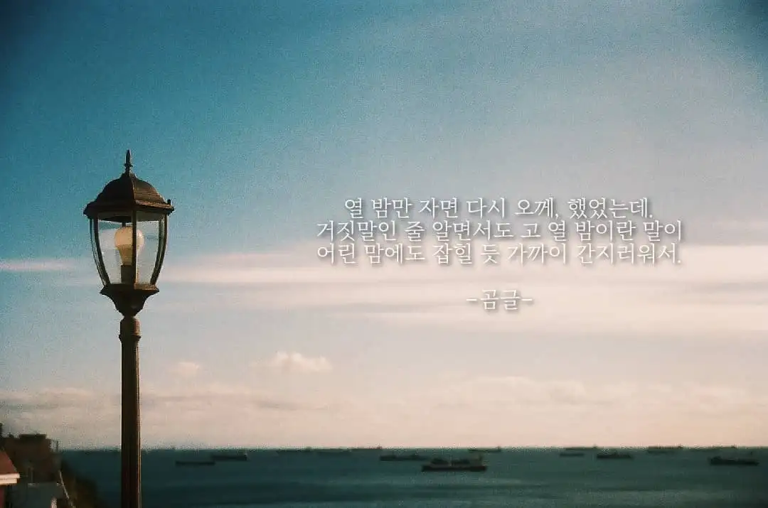 열 밤만 자면 다시 오께, 했었는데. 거짓말인 줄 알면서도 고 열 밤이란 말이 어린 맘에도 잡힐 듯 가까이 간지러워서.