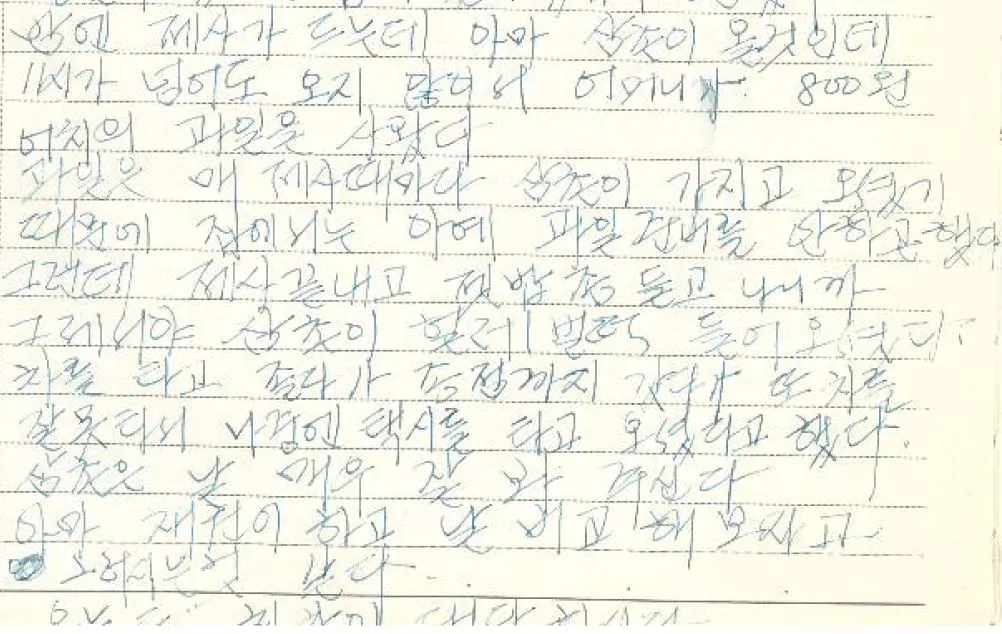 한 번은 아버지를 도와 쓰레기를 치우러 나갔다가 아버지께서 쓰레기 더미에서 토마토를 주워 먹는 것을 봤습니다. 그 모습을 바라보는 마음은 심히 괴로웠습니다. 아버지께서는 나에게 배를 건네셨습니다. 받지 않으려 했지만 결국 받았습니다. 왜 우리는 이렇게 살아야 하는 것일까요.