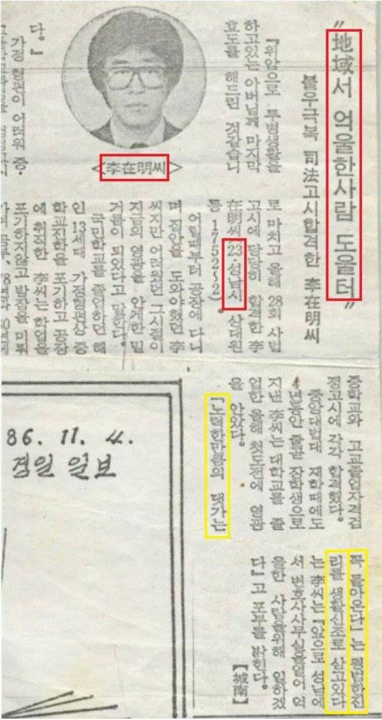 1986년 가을, 사법고시에 최종합격했을 때 한 신문사와 인터뷰할 기회가 있었습니다. 나는 "성남에 변호사사무실을 열어 억울한 사람을 위해 일하겠다"고 당당히 포부를 말했습니다. "노력한만큼의 댓가는 꼭 돌아온다"는 신조도 밝혔습니다.