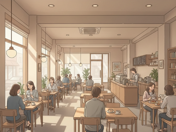 유리창 너머로 사람들이 오가고, 커피 머신 소리가 잔잔하게 들리는 곳.