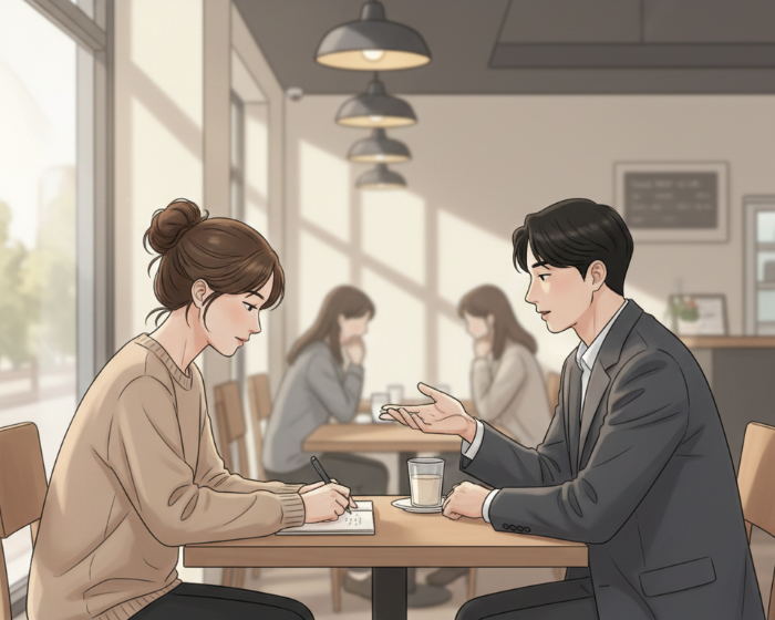 “편한 음료 하나 먼저 시키세요. 상담은 커피 식기 전에 끝내는 게 목표입니다.”