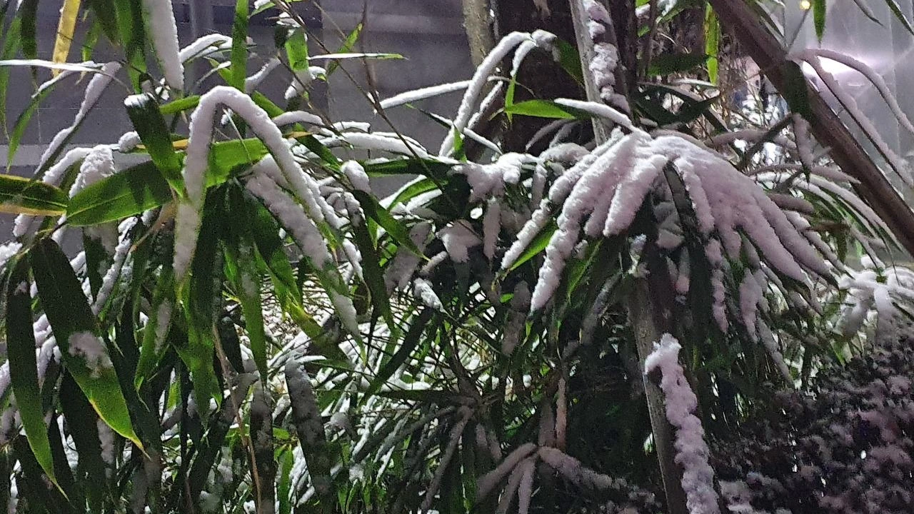 푸른 잎을 보이던 화초 위에도 눈이 쌓이고 달빛을 받으니 더욱 아름답다.