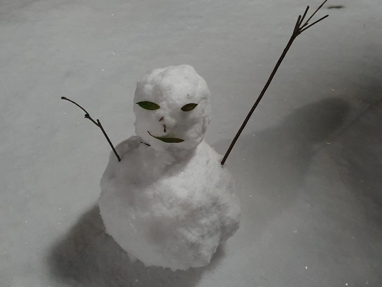 힘을 주어 꼭꼭 눌러 눈사람을 만들어 보았다. 미니 눈사람이 되었다. 잠깐 밖에 있는데도 춥다.