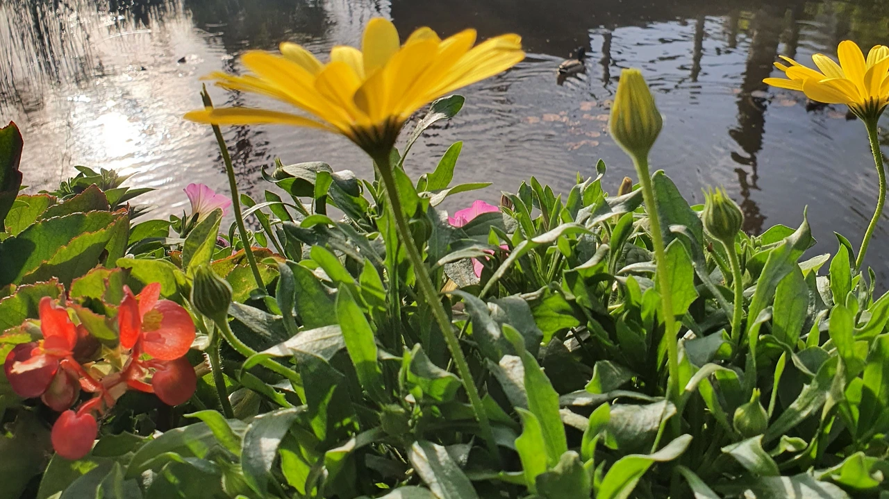 자리 잡고 있는 많은 꽃