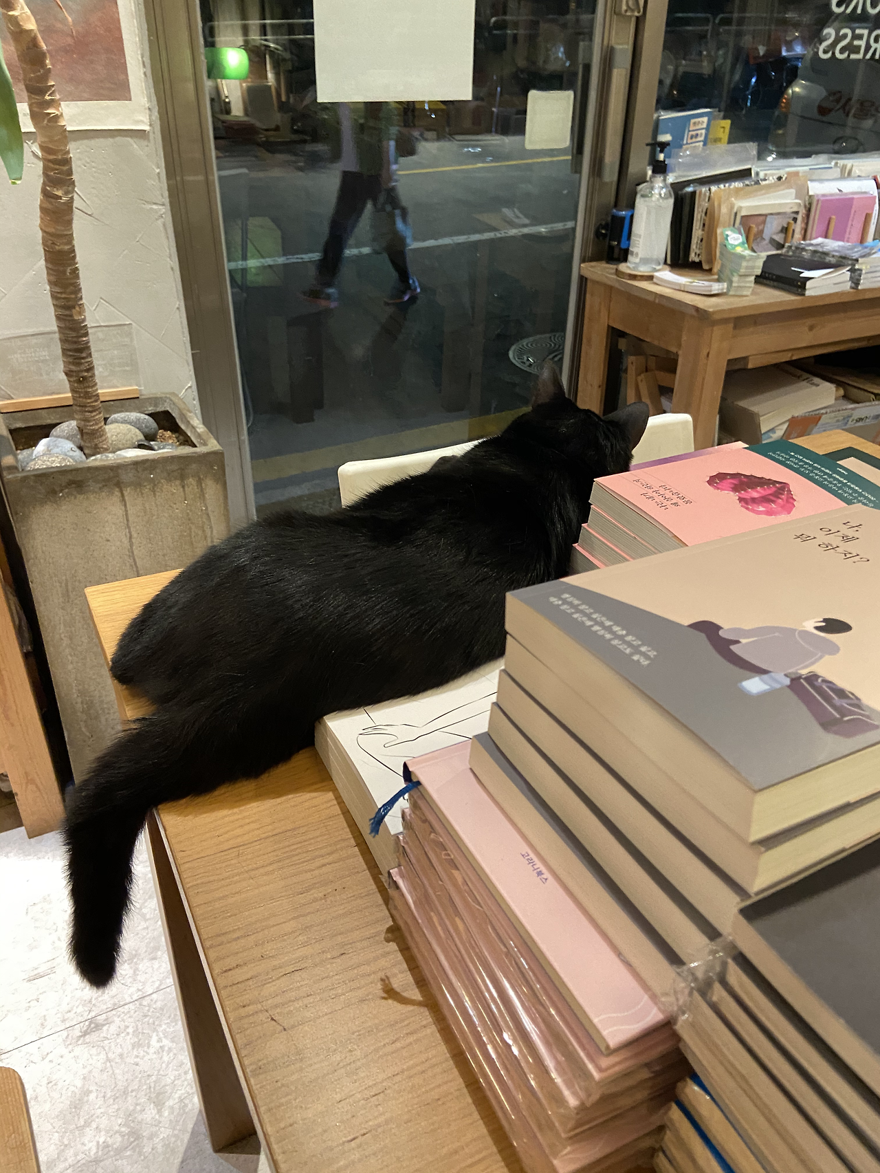 더위에 녹아 내린 듯이 자세를 잡은 이웃 책방 프루스트의 고양님
