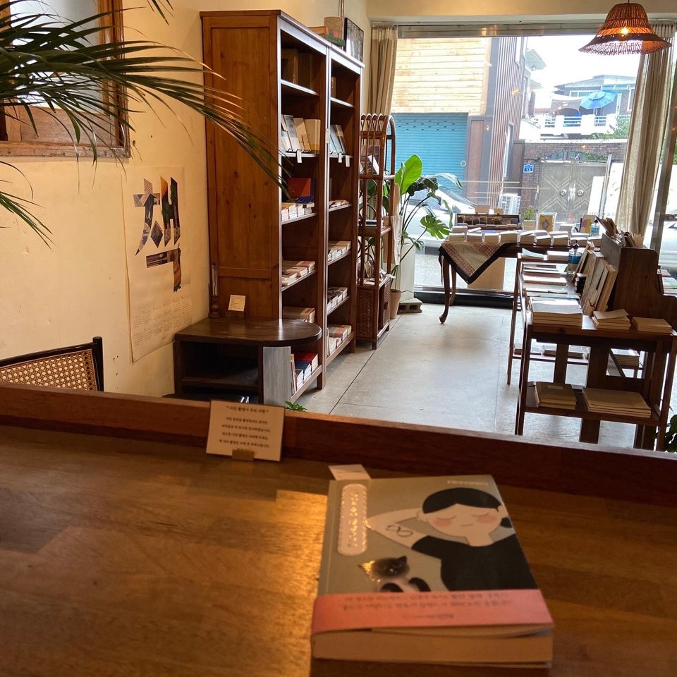 그러니까, 이번에 간 강릉의 서점은 내가 열고 싶었던 모습의 서점이다. 이름도 '한낮의 바다'. 왜 바다가 있는 곳에 서점을 열고 싶었냐면 이미 서울에는 동네책방이 다른 동네들보다 많은 편이고 바다가 있는 곳은 꼭 돈을 쓰지 않고 바라만 보는 것만으로 시간이 잘 흘렀기 때문이다. 짧게나마 제주도에 있는 책방들을 돌아본 경험도 한몫했다. 한낮의 바다는 인스타그램으로 봤던 모습과 비슷하면서도 또 다른 모습으로 있어줘서 구석구석 구경하는 맛이 있었다. 처음에는 손님이 몰려 제대로 구경하지 못했지만 시간이 좀 지나자 차분하게 책을 볼 수 있었다. 정말 마음에 드는 서점에 가면 이 서점이 있는 이 동네에 살고 싶다는 생각이 드는데 그런 서점을 또 만났다.