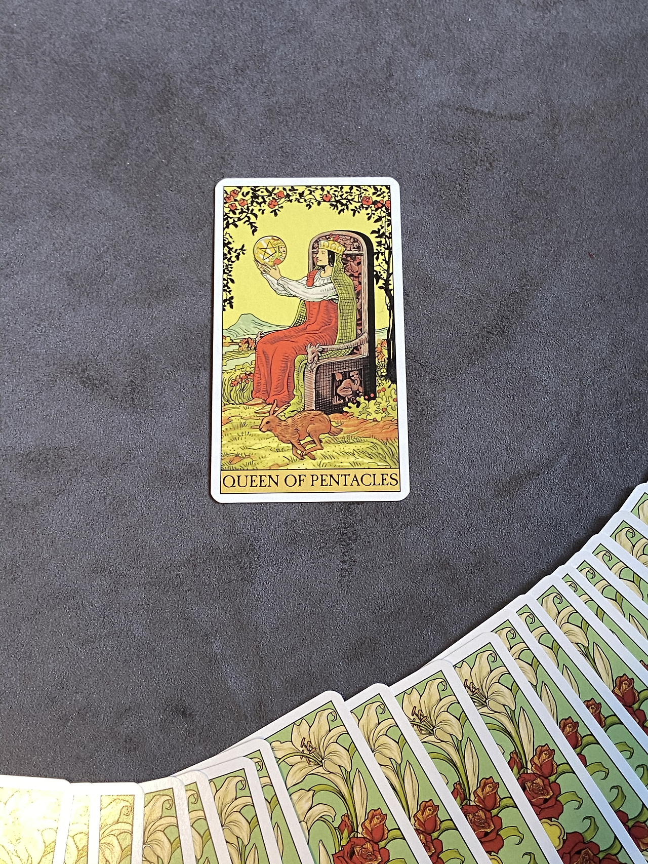 카드의 이름을 읽어보니 무려 동전의 여왕이다. 이 공간에서 안정적이고 풍요롭게 지낼 수 있다는 작가님의 해석을 들었다. 카드 안에 동전을 들여다보고 있는 사람이 아마 나일테고, 그렇다면 책방 한 구석에 내내 앉아 있는 나의 미래가 저 모습일 것이라는 말이다. 집에 가서 괜히 카드의 해석을 다시 찾아본다. 읽을수록 안심이 되는 해석이다. 믿고 싶다. 부적을 하나 받은 기분이다. 동전에 얼굴을 비추고 요리조리 보고 있는 카드를 무기로 잘 버틸 수 있을 것 같다. 한동안은 이 타로의 답을 믿으며 책방 문을 열고 닫고 또 열어야겠다.