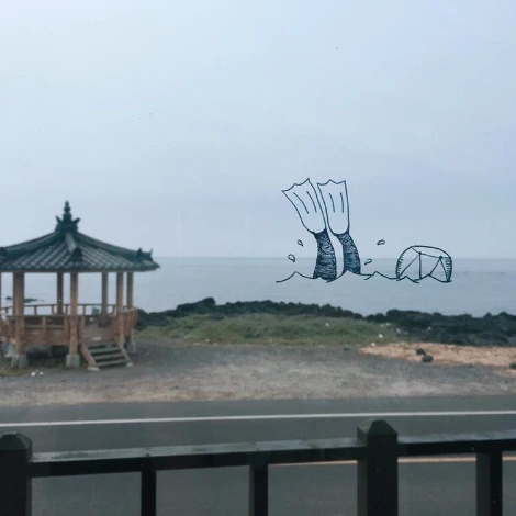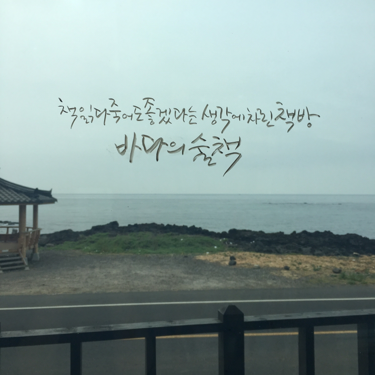 여기 책 읽다 죽어도 좋겠다는 생각에 차린 책방이 있다. 곽지 해수욕장을 지나 협재 해수욕장을 가기 전에 있는 이 책방은 이름만큼 바다와 가깝다. 습한 제주도에 더욱 습한 바닷가 앞에 서점이라니, 애초에 제주에 있는 모든 서점들은 그 상식을 깬 자리에 있다. '바다의 술책'은 더욱 그렇다. 코 앞을 바다에 두고 바다를 바라보며 책을 읽을 수 있는 이곳은 그 존재만으로 특별하다. 버스에 내려 책방에 오기까지 바다라 걷다보면 어느 지점에 서점이 나올지 기대가 된다. 한적한 정자가 보이고 책방의 입간판을 지나면 바다 앞 책방 '바다의 술책'이 눈에 보인다.