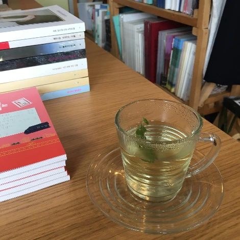 서점에서 책을 구경하고 있을 때, 다른 손님이 서점을 찾았다. 하지만 작은 책방 안에 들리는 대화로 미루어 보아 단순히 방문한 손님은 아니란 걸 알 수 있었다. 그 분은 독립 서적을 제작하는 작가님인 듯 했다. 책 입고를 위해 방문한 것 처럼 보였고 책방 사장님은 그 분에게 드릴 차를 권유하며 나에게도 차 한 잔을 건냈다.