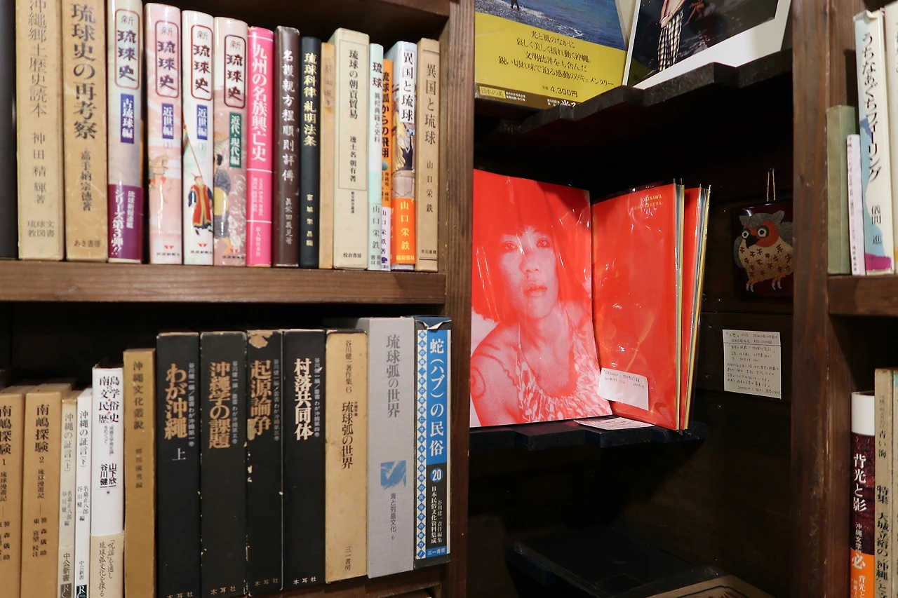 그 옆 사람 세 명이 들어가서 책을 구경하면 꽉 찰 공간으로 가보았다. 마침 내가 책방에 갔을 때 여러 명의 사람이 있지 않아서 비좁지는 않았다. 글을 모르니 사진이 눈에 들어왔다. 사진집이길 바라며 몇 권의 책을 들춰봤으나 완벽한(?) 사진집은 찾을 수 없었다. 그래도 오래동안 숨 쉬고 있는 책들이 오키나와에서도 누군과와 함께하길 바라며 기다리는 모습이 보기 좋았다. 이런 서점이 시장 안에 자리잡고 있다는 것만으로 내게 큰 위로가 되었다.