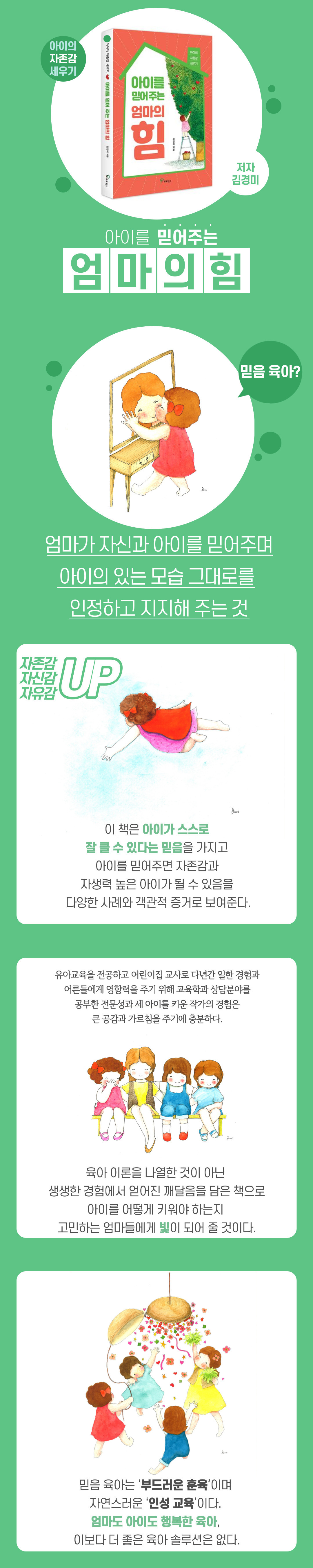 많은 아이들이 엄마의 믿음을 먹으며 자라나 자존감이 건강한 아이로 성장하여 행복하게 자신의 길을 걸어가기를 바라봅니다. 또한 엄마와 아이들이 좀 더 편안하고 행복한, 육아 세상을 꿈꿉니다.