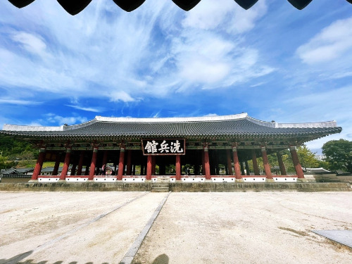 엄-청 위용이 있다. 사실 나머지는 모두 복원된 건데, 이 세병관은 '찐'이다. 통제영의 객사로서, '은하수를 끌어와 무기를 씻는다'라는 심오하고도 아름다운 이름을 가지고 있다. 진짜 엄청 커서 아무리 뒷걸음질을 쳐서 찍어도 사진으로 한 장에 담아내기 힘들었다.