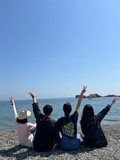 그리고 단체사진도 한컷! 바다 자체가 너무나 맑고 아름다워 문무대왕릉을 보러 온 것인지 뭔지 목적을 망각하였다. 커플이 열심히 사진을 찍다가 나와 눈이 마주쳤는데, 나는 언제나 그렇듯이 오지랖을 발휘하여 수평을 맞추고 몸을 뒤로 꺾어 비율을 좋게 만든 사진을 찍어 주었다. 그러나 이분들은 수평도 맞지 않는 사진을 찍어주어.. 역시 셀카봉을 가지고 다녀야겠구나 라는 생각을 했다.