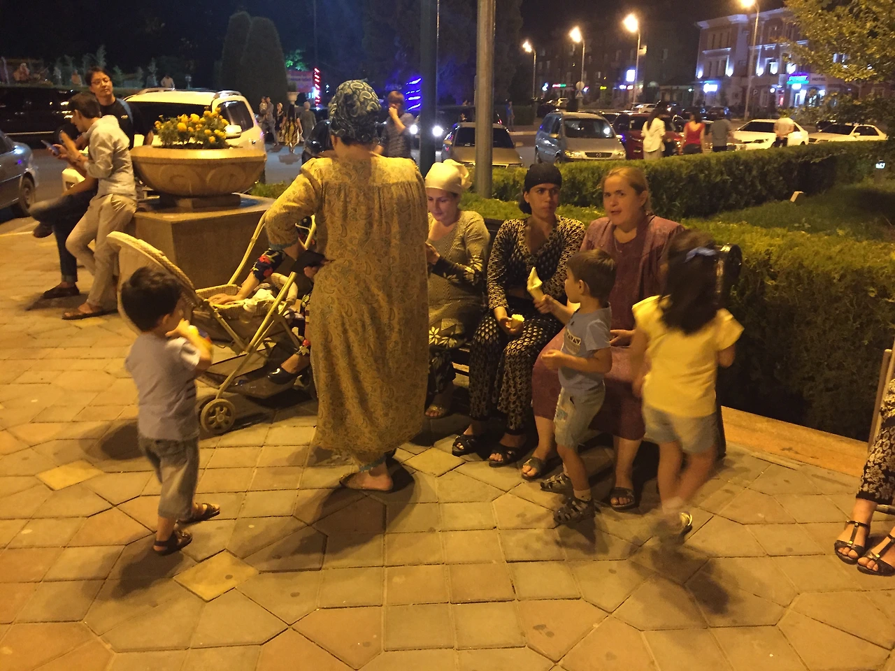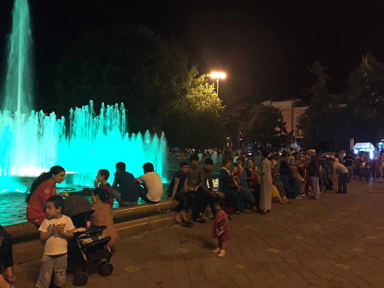 낮 거리에 날씨 탓에 인적이 붐비진 않습니다. 지난 토요일 저녁에 분수광장(루다키 공원)에 나가 보니 사람들이 많더군요. 오페라 같은 음식도 크게 틀어놓고, 분수도 조명을 받아 색색을 뽐내는 모습이었습니다. 저녁이 되면 습도가 낮아선지 서늘한 느낌까지 듭니다. 가족끼리 모여 더위를 식히는 모습은 한국이랑 다를 바 없었습니다. 아이들을 보니 가족 생각이 나더군요. 1년에 3달 반을 해외에서 있어야 하는 제 처지가 처량해졌습니다.