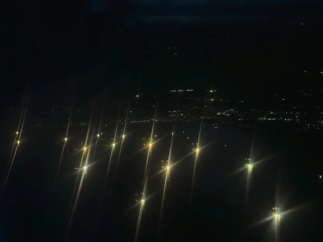 바다의 반짝이는 어선을 보며 내일을 걱정하고 있는 나.