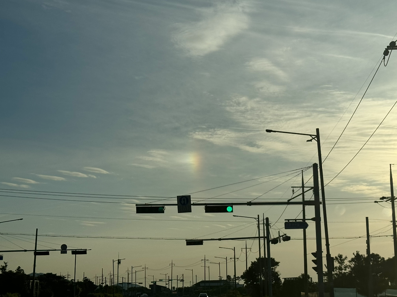 해장국 먹고 돌아가는 하늘에 무지개 발견