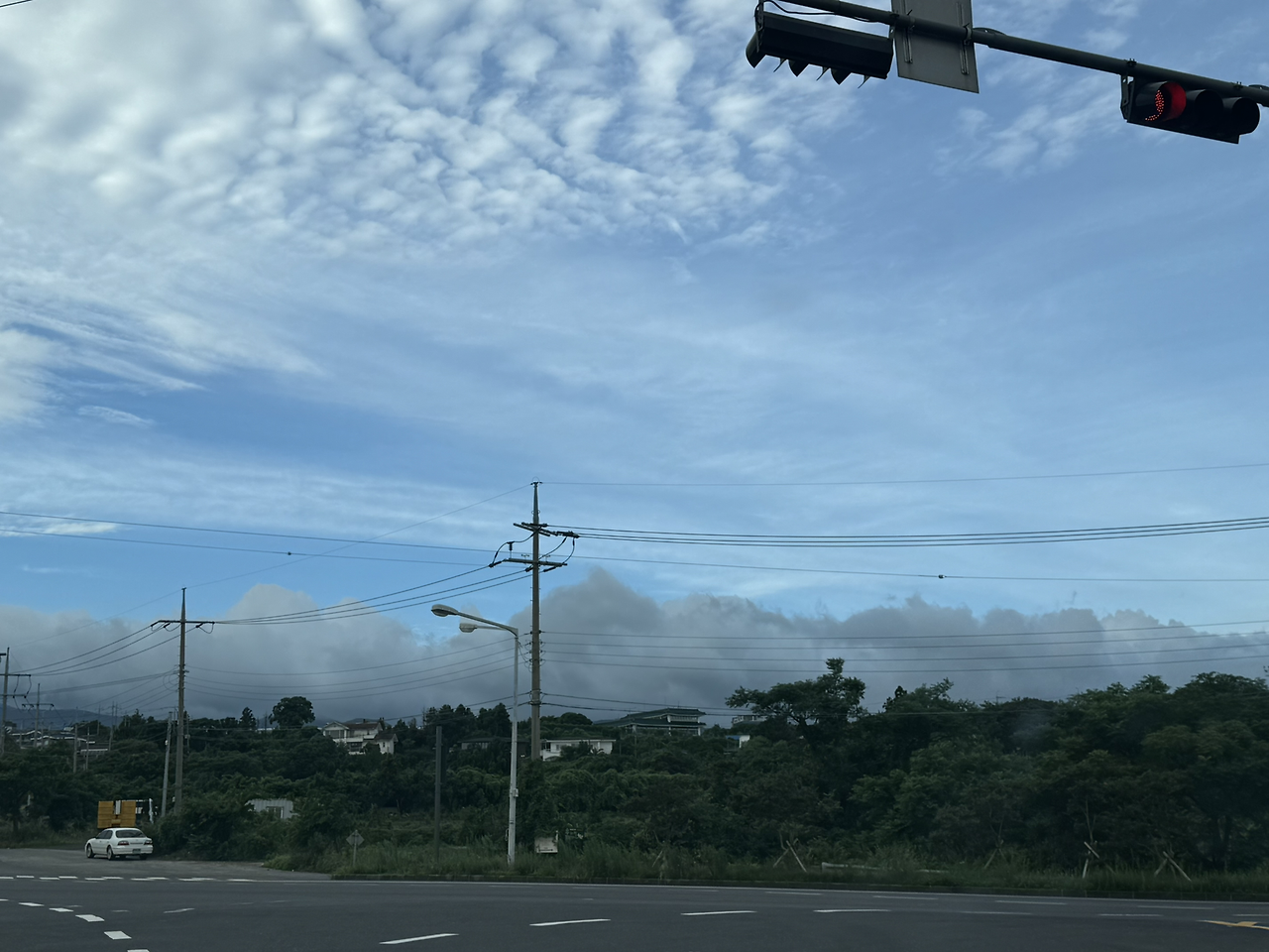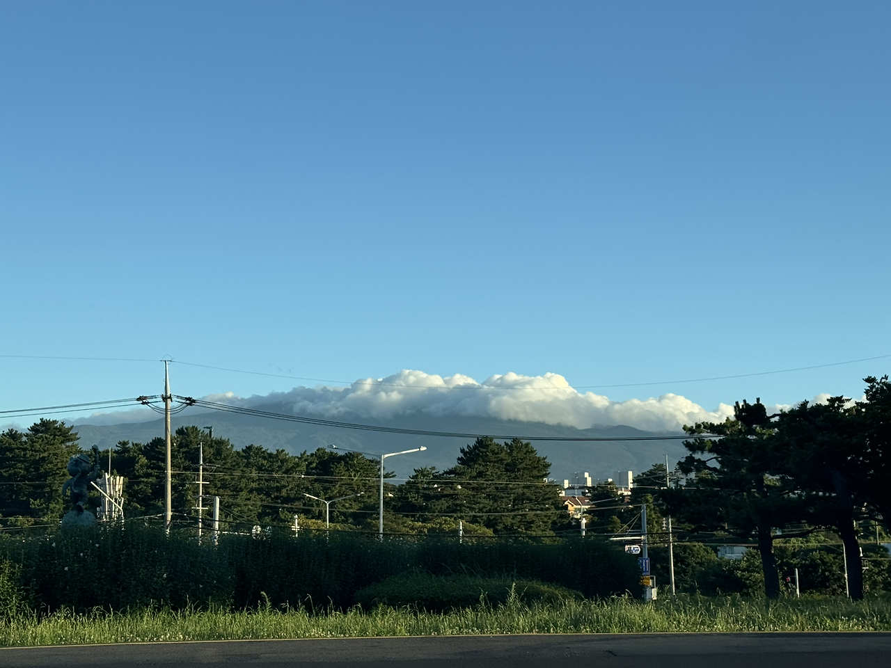 산 정상에 깔려 있는 구름 보다 그 위에 파란 하늘이 눈에 들어왔다.