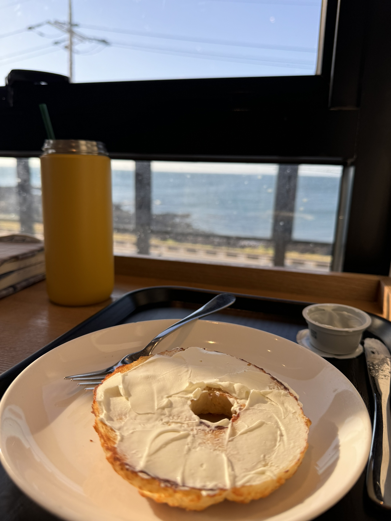 분노 게이지가 머리끝까지 올라 바다를 볼 기분이 아니라고 했지만 바다를 보며 먹는 베이글 왜 맛있어?
