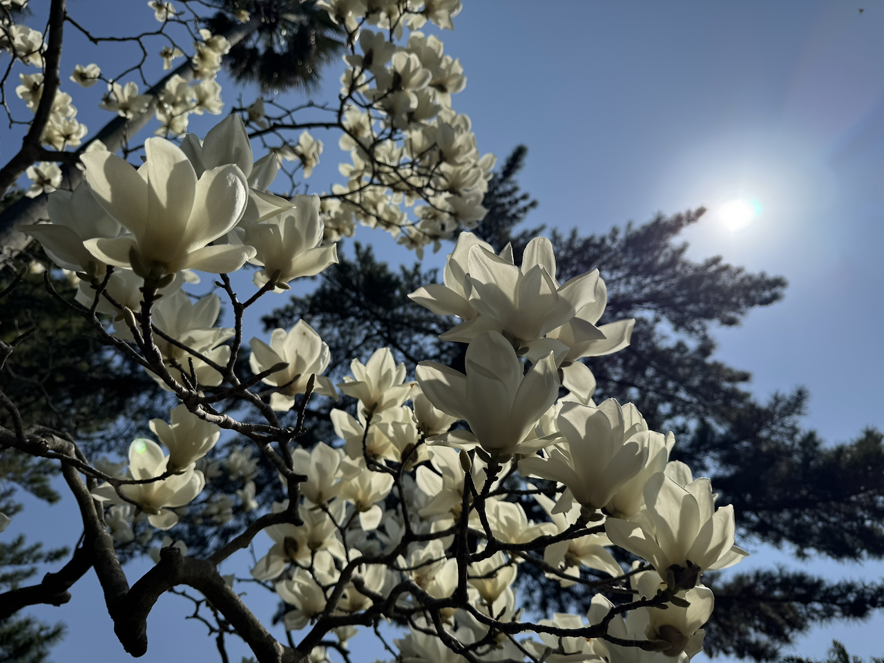 만개한 목련과 다음 주쯤이면 만개할 것 같은 매화가 봄소식을 전한다.