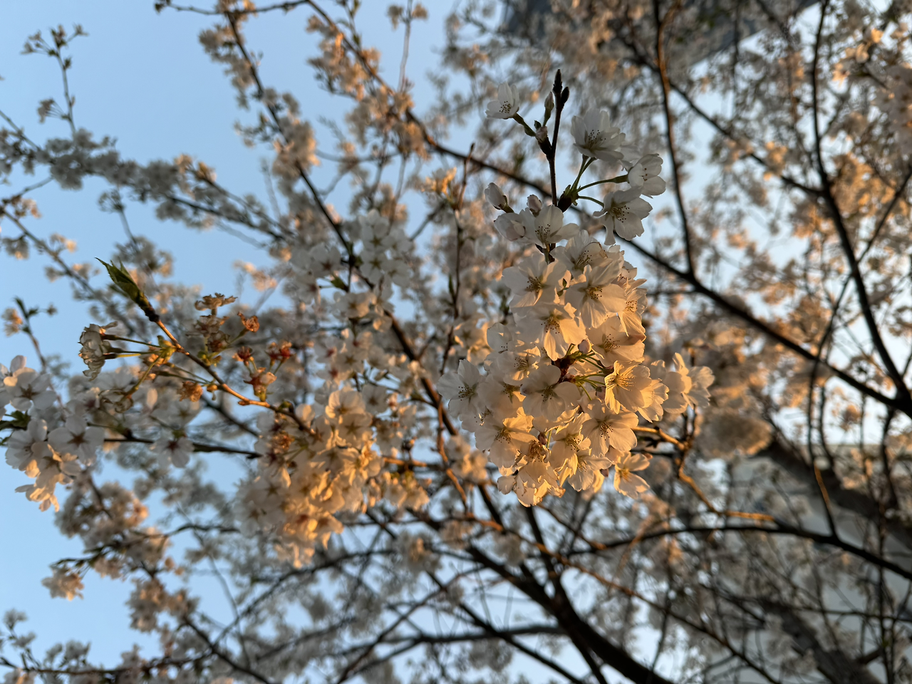 조용했지만 탐스러운 꽃망울을 피우고 있는 벚꽃길이눈앞에 나타났다. 동네 사람들인지 아니면 그 어디쯤에 살고 있는 도민인지 모를 60대 엄마아빠들이 길가 한편에 야외용 테이블을 펼치고 커피를 마시고 계셨다.