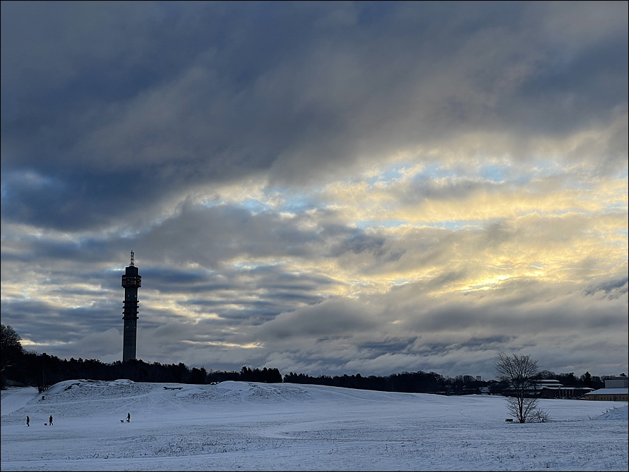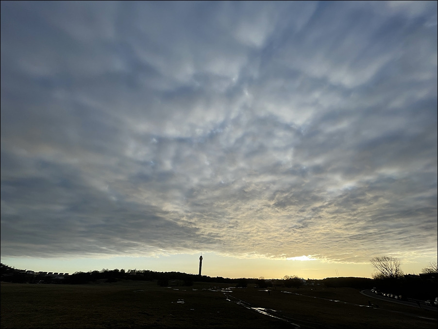 집에 와서 찾아 보니 겨울철 고위도 지방에서 관찰되는 진주모 구름 혹은 진주운(nacreous clouds)인 듯했다.