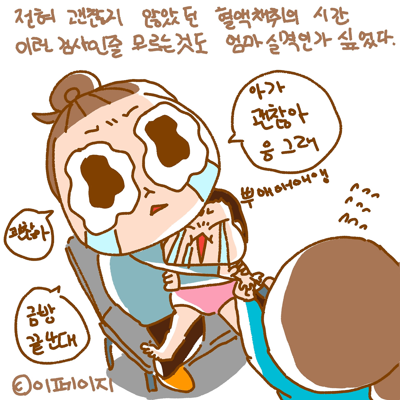 "어머니, 죄송한데 아기 핏줄이 터져서 다른 팔 한 번만 더 할게요."