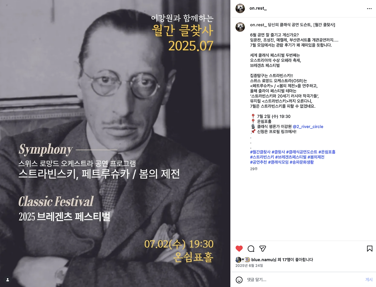7월 스트라빈스키 페트루슈카, 봄의 제전(온쉼표 / 2025.07.02.)