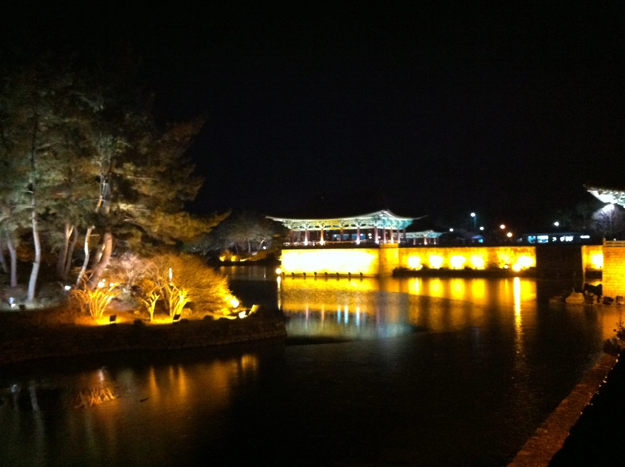 이후 저녁은 떡갈비 정식을 먹었는데, 기본으로 나오는 반찬 가짓수에 놀란 내 친구는 벌떡 일어나 항공샷을 찍었다고 한다. 그 후 첨성대의 야경을 구경하며 동궁과 월지로 이동하였는데, 불국사가 내 친구의 취향이었다면 동궁과 월지는 나의 취향저격이었다. 해가 너무 일찍 져서 깜깜할 때 갔는데, 겨울이라 안압지의 물이 얼어 있어서 약간 아쉬웠음에도 야경이 너무나 예뻤다. 구경을 마친 후 두 뚜벅이는 경주 명물 황남빵과 찰보리빵까지 알차게 사서 숙소로 돌아와 첫날 마무리.