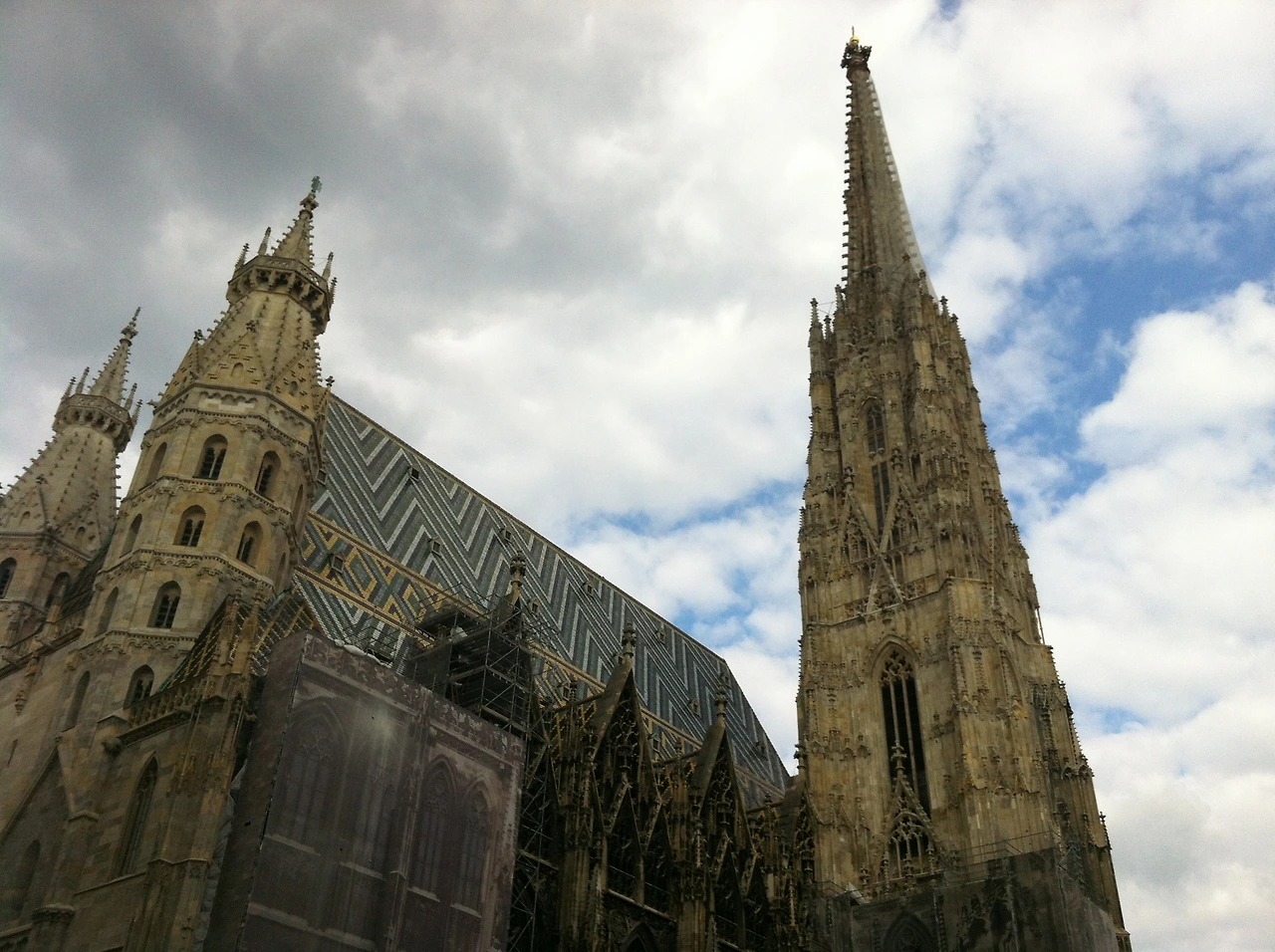 세상 바쁘디 바쁜 여행자는 쇤브룬 궁전 구경을 마친 후 바로 시내로 향했다. 시내로 가자마자 가장 먼저 방문한 곳은 바로 비엔나의 명물 슈테판 대성당 (Stephansdom). '빈의 혼'이라고 불릴 정도로 비엔나의 상징으로 알려져 있는 슈테판 성당은 모차르트의 결혼식과 장례식이 치러진 곳이라고 한다. 매년 12월 31일, 오스트리아 사람들은 슈테판 대성당 광장에 모여 새해를 맞는다고 한다. 로마네스크 및 고딕 양식인 슈테판 성당은 모자이크 지붕이 굉장히 인상적이었는데, 타일의 수가 무려 23만 개나 된다고 한다. 너무 거대해서 이쪽에 가서 한 장 찍고, 저 쪽에 가서 한 장 찍고 열심히 담아본 거대한 슈테판 성당의 지붕.
