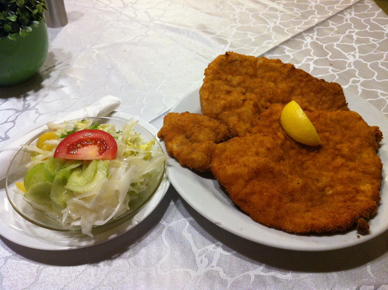 슈테판 성당은 오스트리아 최대의 고딕양식 건물인데, 나에게 있어 이런 고딕양식은 대체적으로 묵직한 느낌으로 다가온다. 성당의 지하에는 유골들이 모여있는 지하묘지 카타콤이 있다고 하는데, 혼자 그런 장소에 가는 것을 무서워하기에 성당 내부만 둘러보고 나왔다. 그런데 이번에 <풍향고2>에서 슈테판 성당 첨탑에 올라가는 것을 보니 그때의 나는 왜 모르고 그냥 나왔는가 아쉬움 한가득. 그렇게 슈테판 성당을 둘러본 후 케른트너 거리를 걸으며 오스트리아의 유명한 초콜릿인 '모차르트 쿠겔'도 맛보고 기념품도 구경하다 이른 저녁으로 슈니첼을 먹으러 가기로 했다. 내가 여행을 시작하면서 세운 작은 철칙이(?) 하나 있는데, 바로 한 끼는 여행하는 나라의 유명한 음식을 맛보는 것. 그렇게 선택된 오늘의 메뉴는 바로 우리에게 익숙한 돈가스와 같은 커틀릿 요리인 슈니첼 (Schnitzel).