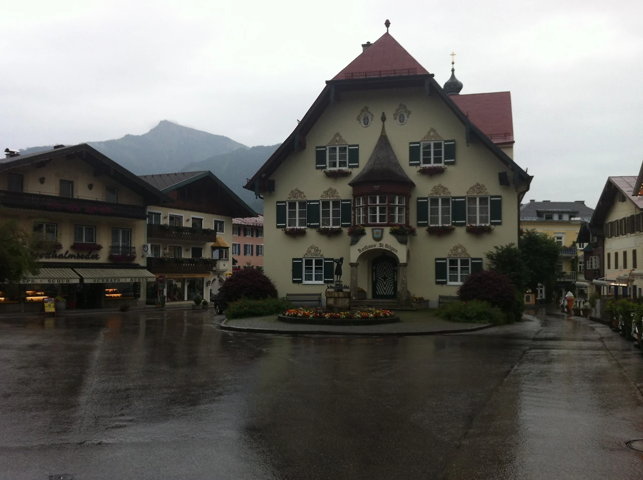 우산을 준비하여 가지고 오지 않은 죄로(?) 바람막이 후드를 뒤집어쓰고 장크트길겐 탐방 시작! 장크트길겐 (Sankt Gilgen)는 영화 <사운드 오브 뮤직>의 촬영지로 모차르트와 관련이 깊은 유명한 호수 마을이다. 이곳은 모차르트의 어머니가 태어난 곳으로 모차르트의 외가가 있는 곳인데, 모차르트도 잠시 머물기도 했고 여동생 난넬은 결혼 후 이곳에 정착하여 살았다고 한다. 비를 뚫고 겨우겨우 찾아낸 모차르트의 외갓집은 볼프강 호수 앞에 있었는데, 모차르트의 이름 '볼프강'이 바로 이곳의 이름을 따라 지어졌다는 재밌는 사실. 모차르트 외갓집은 현재 박물관으로 사용되고 있었고, 건물의 벽에는 모차르트 가족의 초상화가 그려져 있었다.