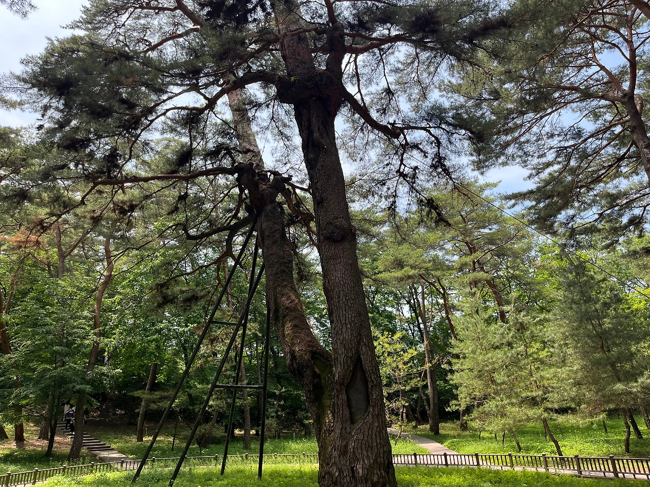 배를 타고 들어온 청령포에서 가장 먼저 만난 곳은 단종어소와 행랑채. 청령포 안에 빽빽하게 늘어선 소나무들로 인해 너무나도 아름다운 풍경인데, 이곳에 갇혀 아무것도 하지 못했을 홀로 남겨진 단종에게는 이 아름다움이 얼마나 괴로운 풍경이었을지. 청령포의 한가운데는 천연기념물 제349호로 지정된 영월 청령포의 관음송을 만날 수 있었는데, 수령 600년으로 추정되는 관음송의 키는 30m로 우리나라의 소나무 중 가장 크다고 한다. 관음송의 이름의 뜻이 너무나도 슬픈데, '단종의 비참한 모습을 보고 오열하는 소리를 들었다'는 뜻이라고 한다. 단종은 두 갈래로 크게 갈라져 있는 관음송 사이에 걸터앉아 쉬거나 시름에 잠겼다고 전해진다고 한다.